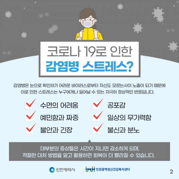 코로나19로 인한 감염병 스트레스 관련 카드뉴스입니다.
