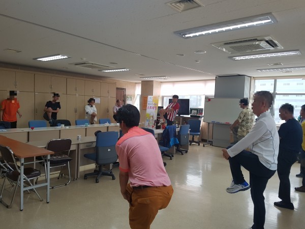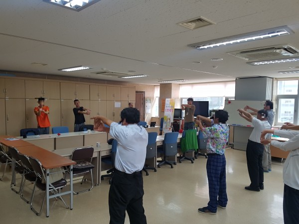 주간재활프로그램 중 신체건강 프로그램으로 게릴라 스트레칭을 실시하였습니다.