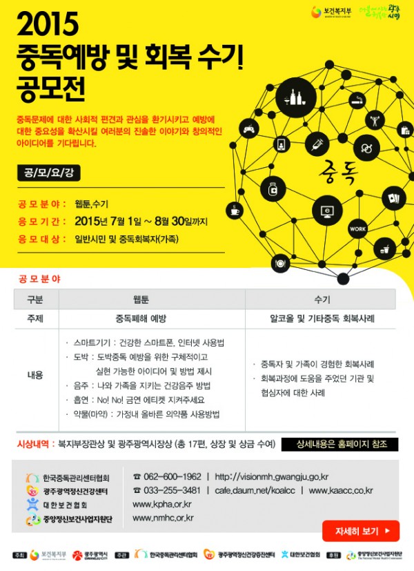 『2015 중독예방 및 회복수기 공모전』을 진행합니다.