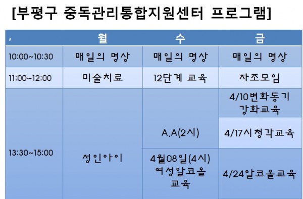 4월 주간재활프로그램 및 여성알코올교육 프로그램 일정