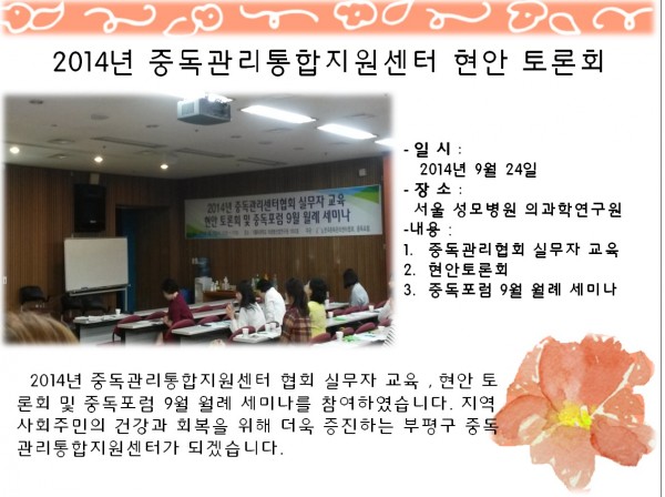 2014년 중독관리통합지원센터 현안 토론회 참여 페이지 정보 작성자 부평알상 댓글 0건 조회 7,630회 작성일 14-10-10 16:17 목록 본문 2014년 중독관리통합지원센터 현안 토론회 참여 이전글A.A 인천희망그룹 8주년공개모임참여 14.10.10 다음글10월 갈산복지관 이동상담 일정안내 14.10.10 댓글 0 댓글목록 등록된 댓글이 없습니다.
