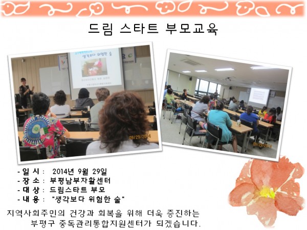 드림 스타트 부모교육 페이지 정보 작성자 부평알상 댓글 0건 조회 7,576회 작성일 14-10-10 16:18 목록 본문 드림 스타트 부모교육 이전글부평구중독관리센터 기관소개 14.10.10 다음글A.A 인천희망그룹 8주년공개모임참여 14.10.10 댓글 0 댓글목록 등록된 댓글이 없습니다.