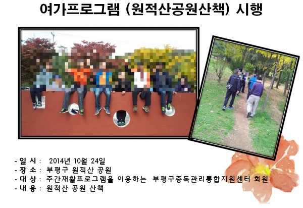 여가프로그램 (원적산공원산책)시행 페이지 정보 작성자 부평알상 댓글 0건 조회 7,846회 작성일 14-11-17 14:40 목록 본문 여가프로그램으로 원적산공원 산책다녀왔습니다. 이전글서진복지재단 실무자 대상 인권교육 14.11.17 다음글자살예방&정신건강의 기념식 참여 14.11.17 댓글 0 댓글목록 등록된 댓글이 없습니다.