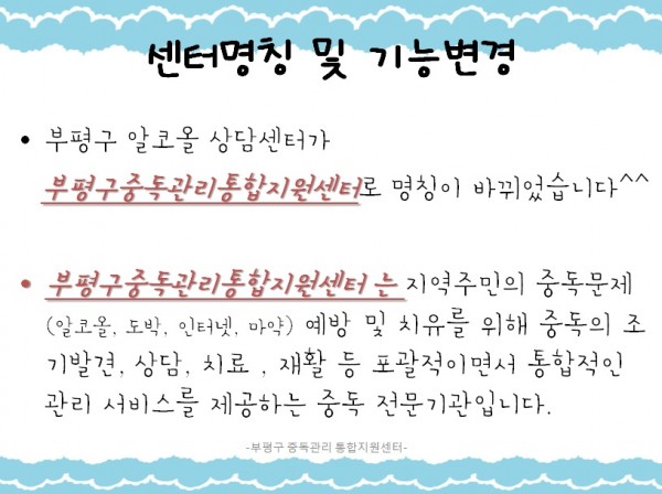 부평구 중독관리통합지원센터로 명칭이 변경되었으니