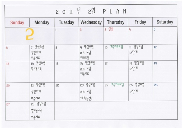 부평구알코올상담센터에서 실시하는 주간재활 프로그램 일정표입니다.