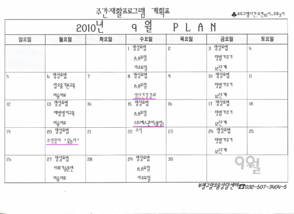 주간재활 프로그램 9월 일정 안내