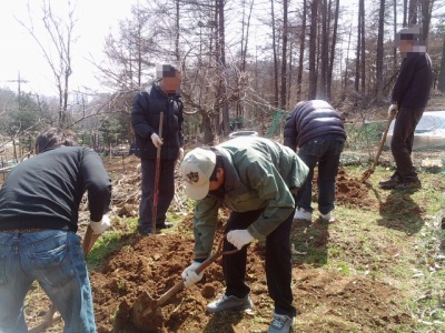 오전 10시 반에 텃밭가꾸기 활동을 실시하고 있습니다.
